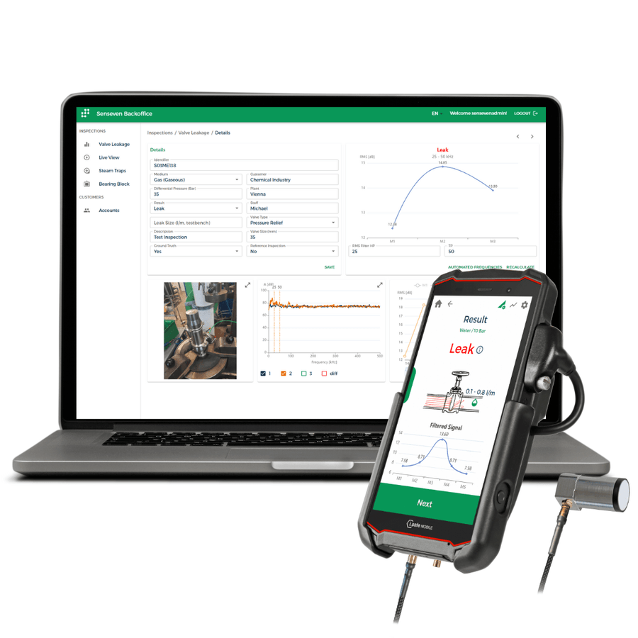 Es baut auf der bewährten Methode der Schallemissionsanalyse auf. Die digitale Lösung kombiniert hochwertige Schallemissionssensoren mit innovativen Smartphones für Ex- und Nicht-Ex-Bereiche, die mit der Senseven-Software ausgestattet sind.